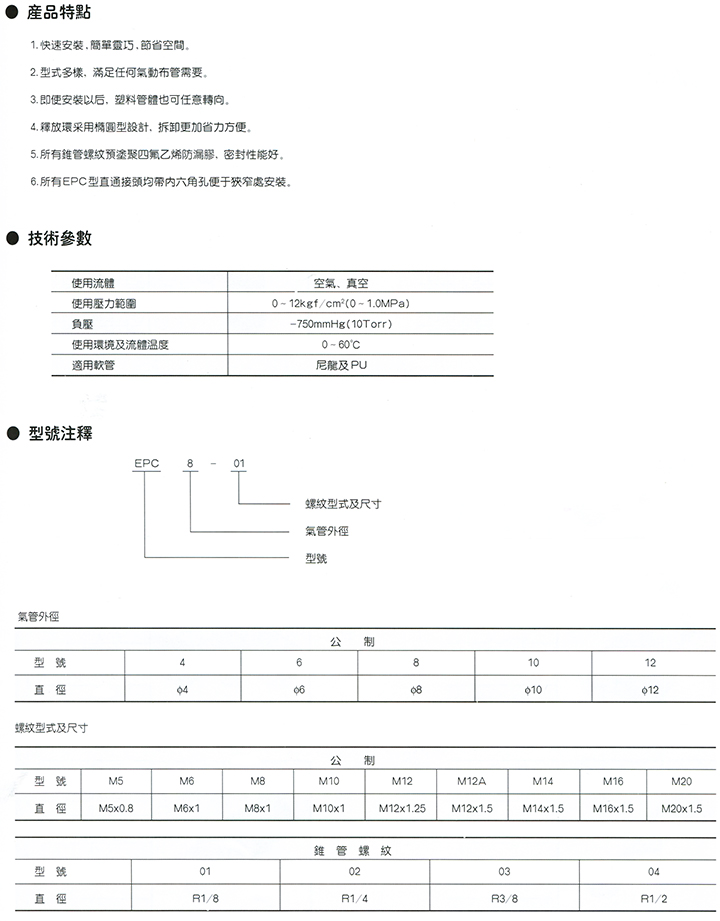快插式气动管接头