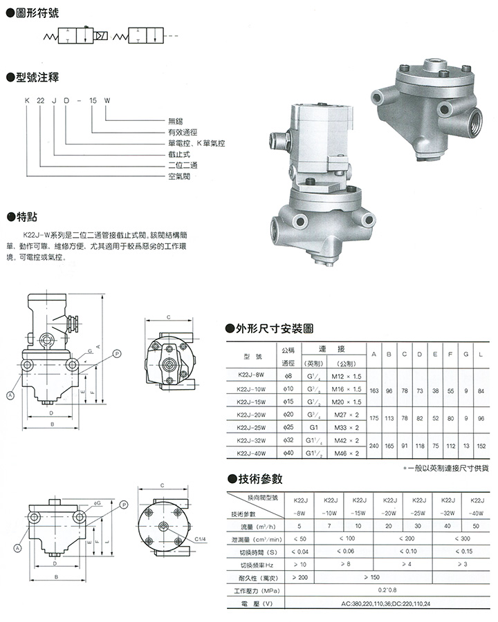 K22J-W系列二位二通换向阀